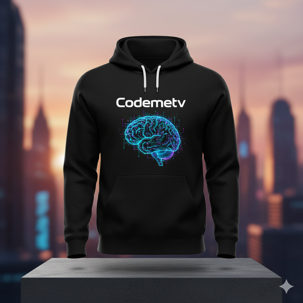 A clean branded hoodie from Code TV for AI made for builders, creators, and future AI thinkers. Designed for comfort and everyday wear while representing a passion for coding, creativity, and technology.
